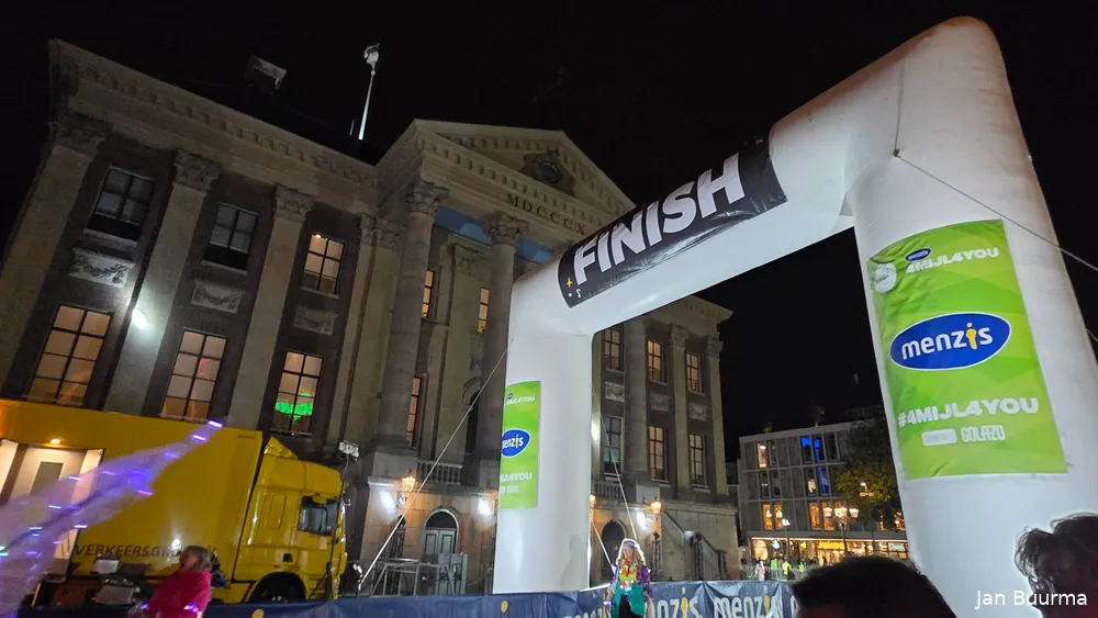 Ter hoogte van de Hereburg in Groningen werden de deelnemers nog steeds luid aangemoedigd met muziek van de DJ’s. Op de Grote Markt met veel publiek kwamen de deelnemers blij over de finish. Ze kregen allemaal een medaille als herinnering.