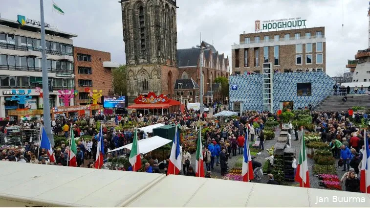 Snijbloemen, vaste planten, bloembollen, gereedschap en nog veel meer werd aangeboden op de Grote Markt, Oude Ebbingestraat, het Waagplein, Vismarkt en A-Kerkhof.