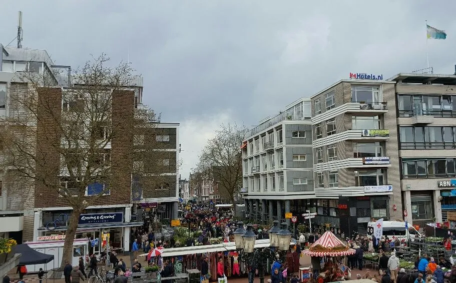 Het was een gezellige drukte op de bloemetjesmarkt in de binnenstad van Groningen vrijdag. Onder de bezoekers waren ook dit jaar weer veel toeristen en vooral Duitsers.
