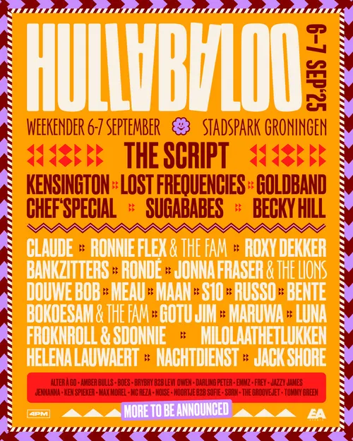 De kaartverkoop voor Hullabaloo Festival op 6 en 7 september 2025 begint zaterdag. Kijk hier voor de volledige line-up.