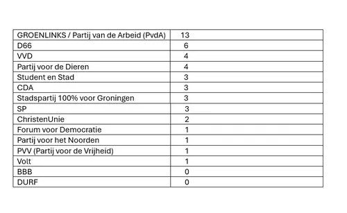 De lijsttrekkers van de gekozen partijen zijn donderdagavond met elkaar in gesprek gegaan over de uitslag van de verkiezingen. In dit zogeheten duidingsgesprek bespraken de lijsttrekkers de verkiezingsuitslag en uitten zij hun verwachtingen over de opdracht van de verkenner. Ineke van Gent werd door GroenLinks-PvdA voorgedragen als verkenner voor de nieuw te vormen coalitie in de gemeente Groningen. Van Gent was tot voor kort burgemeester was op Schiermonnikoog. De verkenner is de persoon die de komende tijd met partijen in de nieuwe raad in gesprek gaat over het verdere bestuursvormingsproces.
