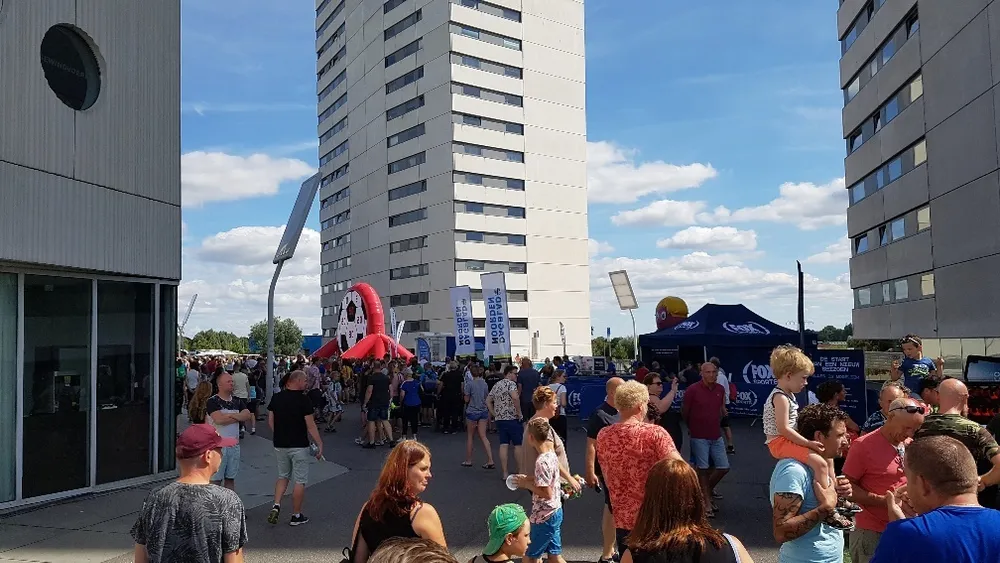 Ook was er een gedeelte met springkussens, een horecagedeelte en waren de spelersbussen te bekijken.