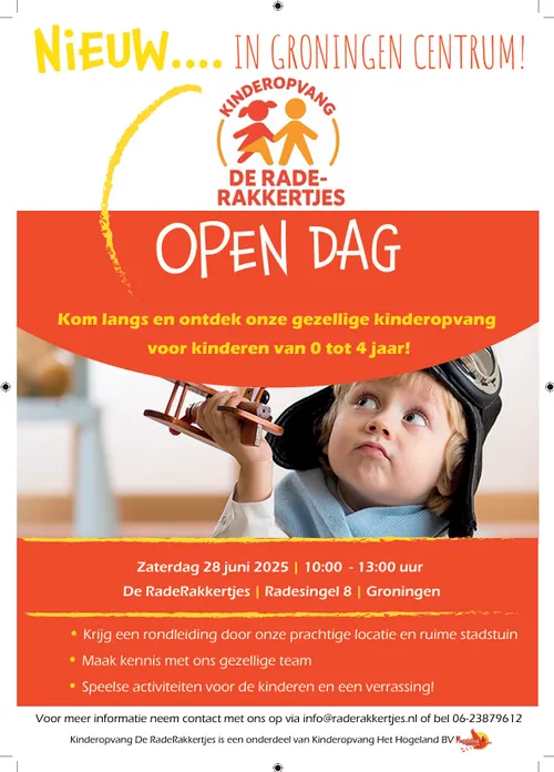 Zaterdag 28 juni organiseert de kinderopvang een open dag van 10.00 uur tot 13.00 uur. Bezoekers kunnen een rondleiding krijgen, kennismaken met het team en er zijn activiteiten voor de kinderen.