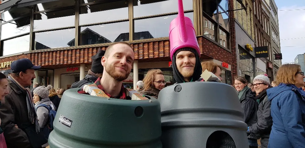 Ook dit jaar deelde een promotieteam in regentonnen over de bloemetjesmarkt kortingsbonnen uit om aandacht te vragen voor het gebruik van regenwater en regentonnen.